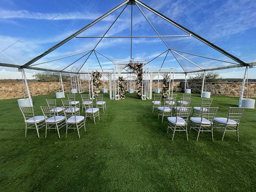 Now that you have the basics down, here are a few extra tips to help you make the most of your tent space. First, consider the size of your chairs. While comfort is important, opting for smaller chairs can help free up room for other elements, like aisles or activity areas. Additionally, make sure to leave enough space between rows or tables to allow guests to move easily—nothing is worse than having to squeeze past a tight seating arrangement.
