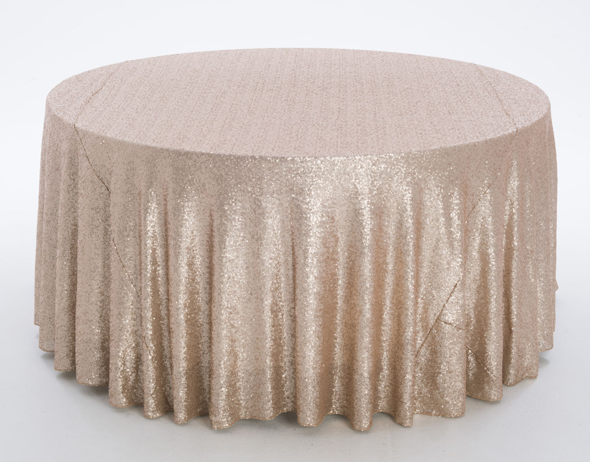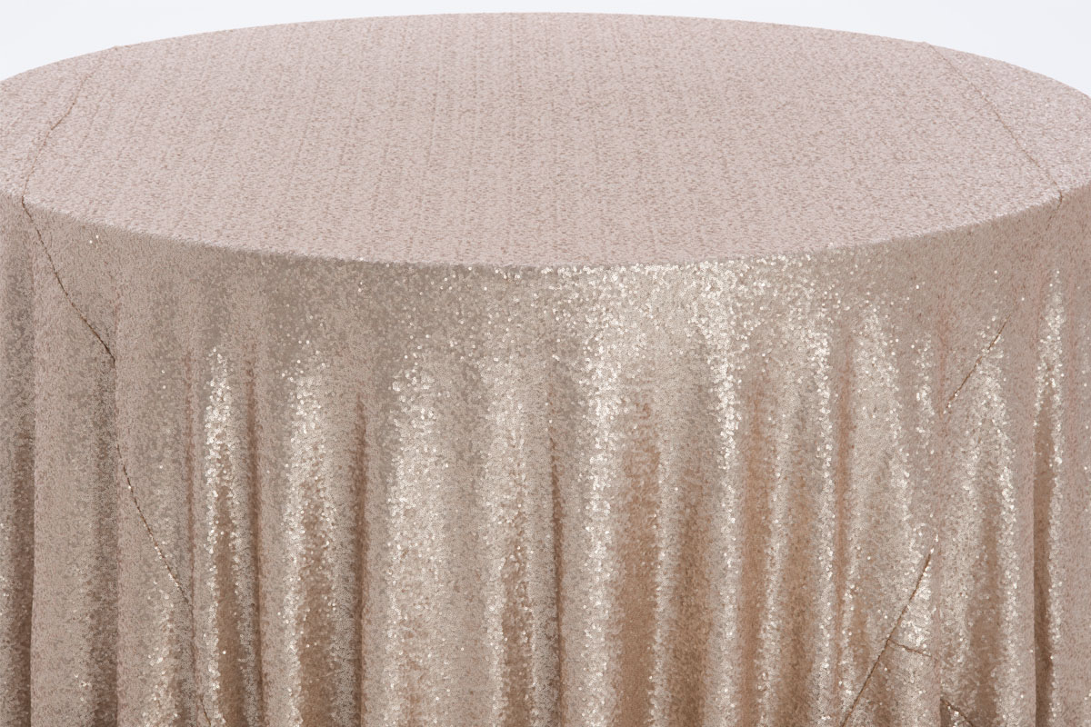 Elevate your event with our Champagne Glitz tablecloth. The shimmering champagne fabric adorned with glitzy accents exudes glamour and sophistication, making it perfect for upscale weddings, gala receptions, or formal affairs. Make a statement with this exquisite tablecloth that captures the essence of refined luxury.