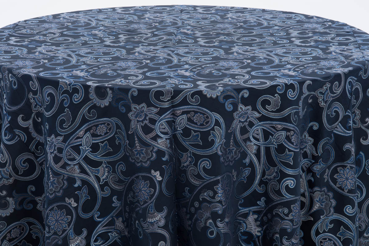 Add a touch of exotic flair to your event with our Cobalt Paisley Damask fabric. The vibrant cobalt blue hue and intricate paisley pattern create a sense of vibrancy and energy, perfect for cultural celebrations, bohemian weddings, or festive gatherings. Make your occasion unforgettable with this versatile fabric.