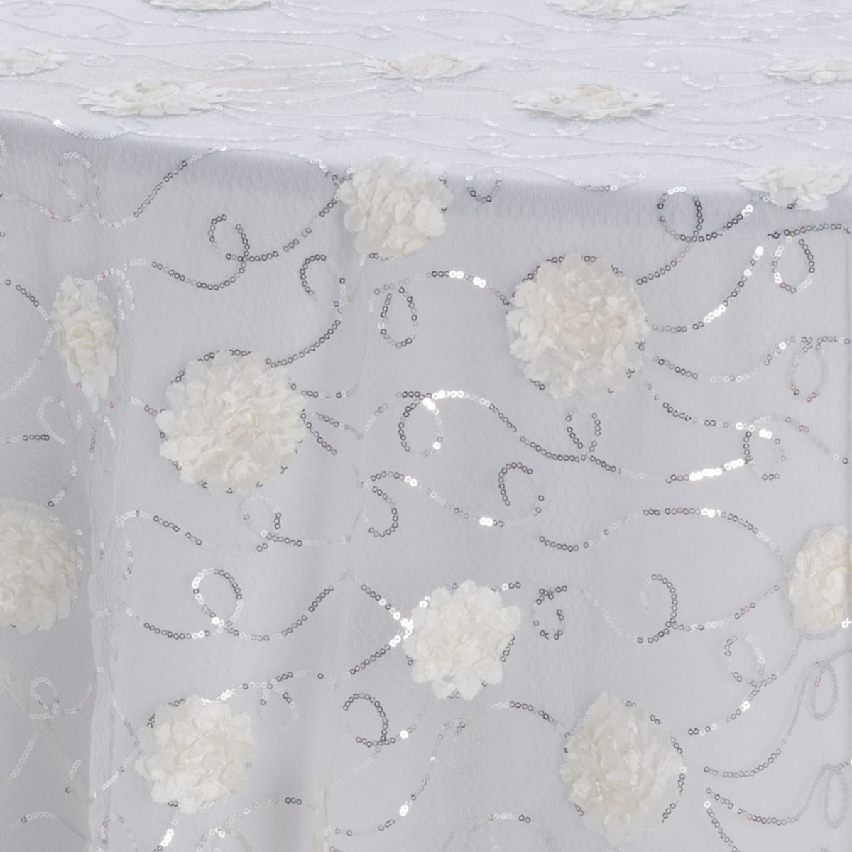 Elevate your event with our Ivory Gardenia Textured Sheer tablecloth. The delicate ivory fabric adorned with intricate gardenia detailing creates a soft and romantic look, perfect for weddings, garden parties, or springtime celebrations. Make a grand impression with this exquisite tablecloth that captures the essence of natural elegance and charm.